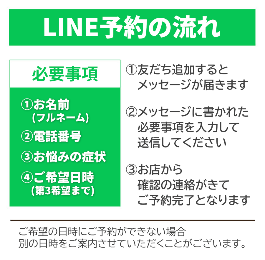 留守番電話に「お名前」「電話番号」をご伝言いただくか、LINEからのお問い合わせをお願いいたします。